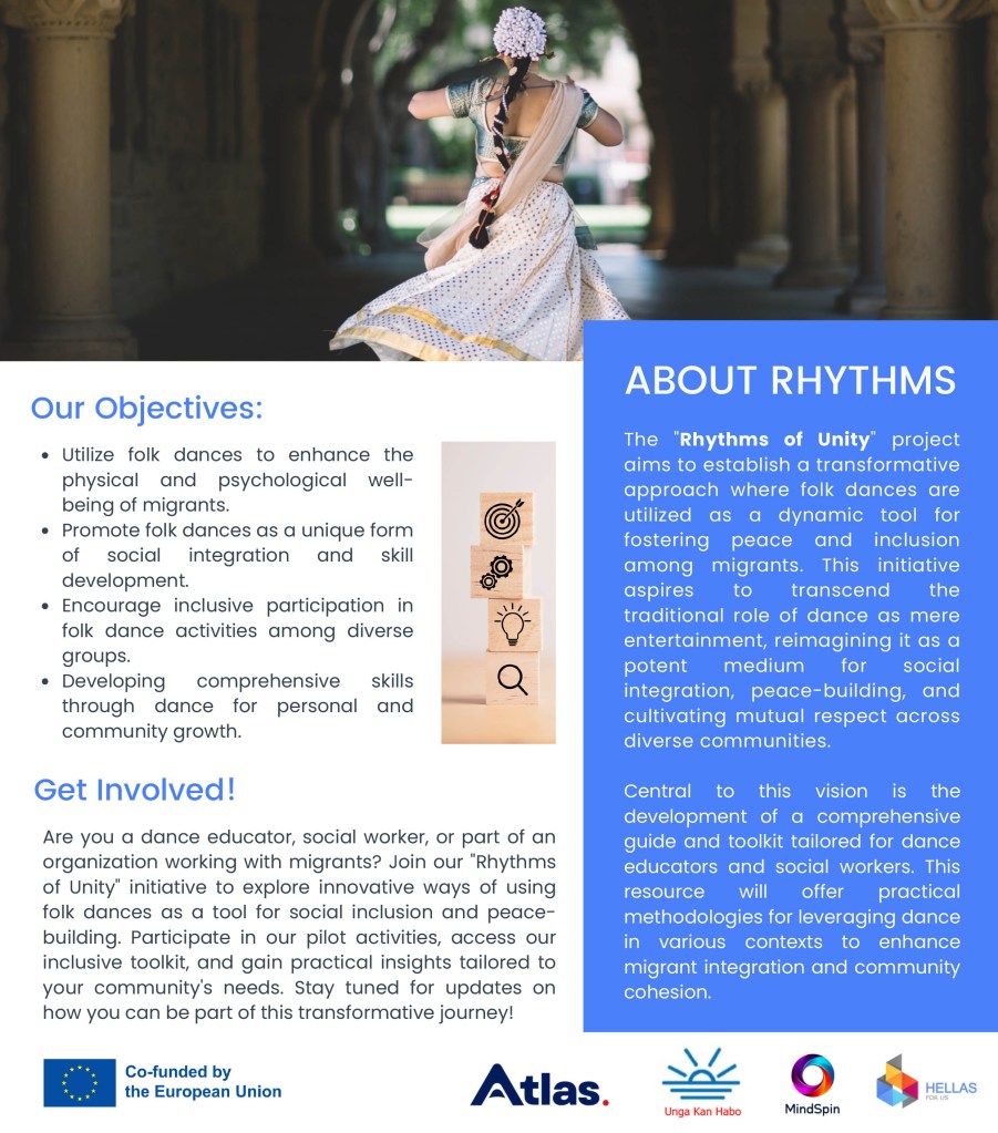Unga Kan Habo blev tidigare i år ackrediterade för att söka bidrag från Erasmus+ och har nu stolt påbörjat sitt första europeiska projekt, RHYTHMS, där de deltar som en av samarbetspartnerna. Projektet Rhythms of Unity syftar till att använda folkdanser som ett kraftfullt verktyg för att främja fred, inkludering och integration bland migranter. För mer information om projektet, besök RHYTHMS hemsida.
